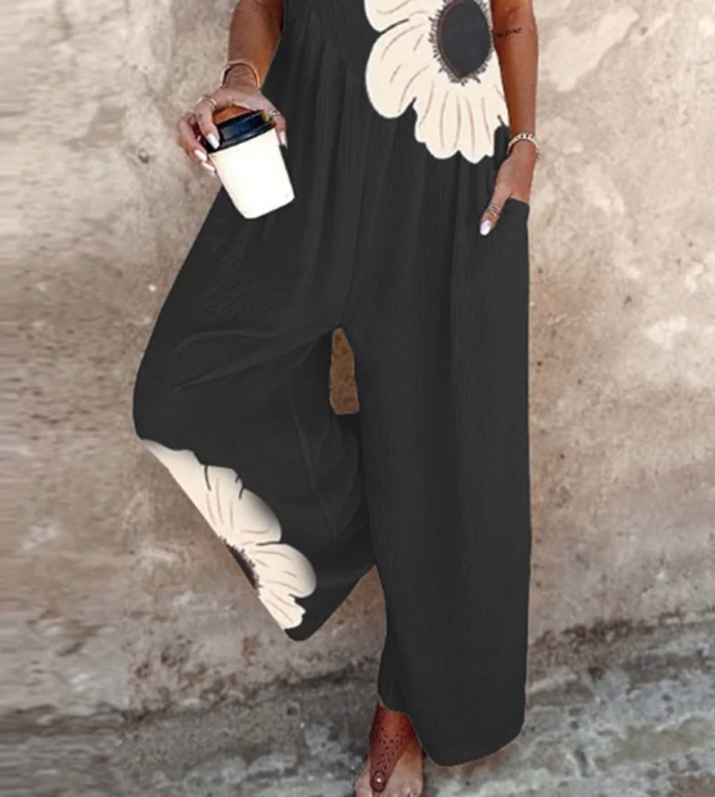 Introducing our Elegant Sleeveless Floral Print Jumpsuit. Made with a modern, eye-catching design, this jumpsuit is perfect for any occasion. Its sleeveless style and beautiful floral print will make you stand out from the crowd. Get ready to turn heads and make a stylish statement with this must-have piece in your wardrobe.